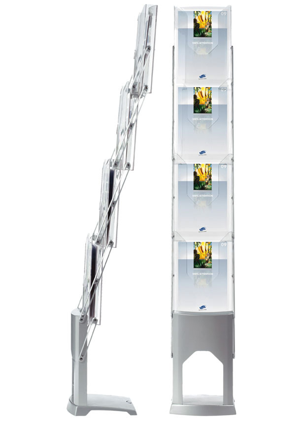 Brochure Stand je perfektní doplněk k ostatním prezentačním systémům a praktický nástroj k přepravě a skladování brožur mezi jednotlivými akcemi.