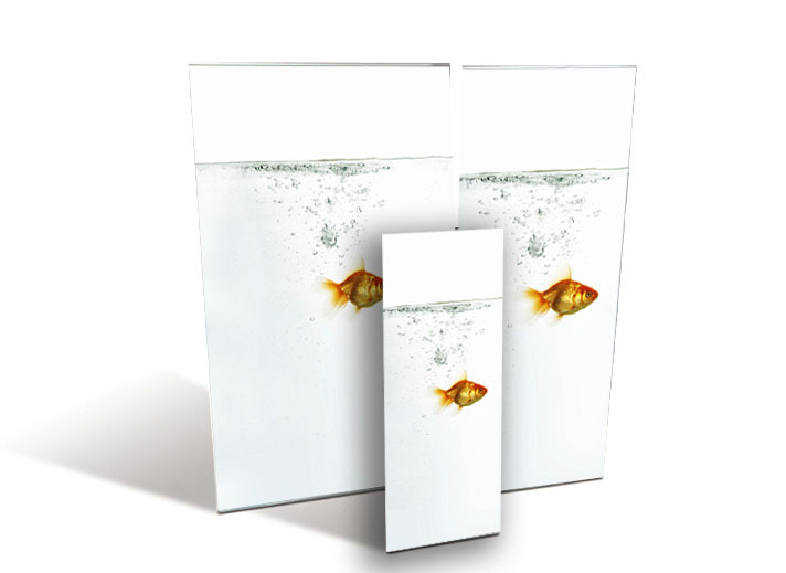 K dispozici je standardní varianta se samolepícím PVC páskem nebo varianta se zamykacím profilem, který umožňuje použití textilních a hrubších grafických panelů.